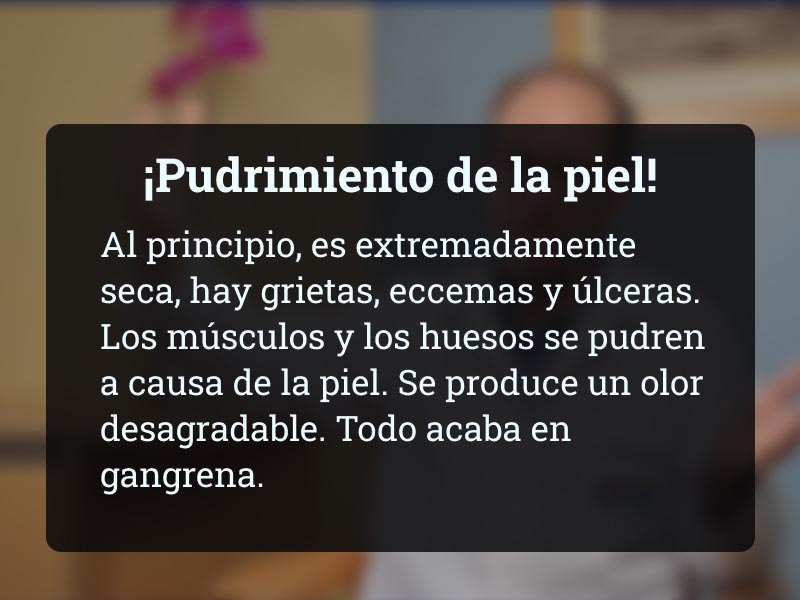- Cirrosis hepática: el hígado se disuelve en el tejido conectivo y ya no limpia la sangre, por lo que las toxinas llenan el cuerpo