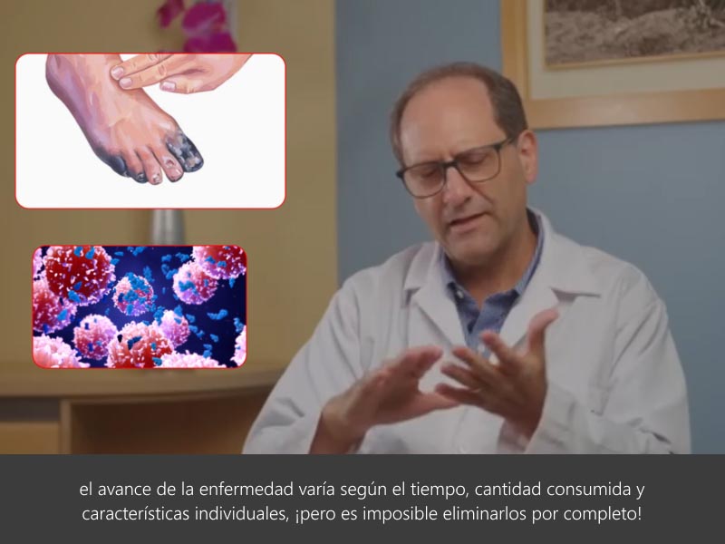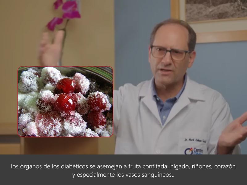 Imagínense una cereza o una frambuesa confitada. Lo mismo ocurre con todos los vasos sanguíneos en caso de diabetes. Las paredes de los vasos sanguíneos se llenan de azúcar y se endurecen. Como resultado, los vasos sanguíneos pierden su capacidad de estrecharse y ensancharse. Al principio, los primeros en dañarse son los vasos sanguíneos pequeños, y luego los medianos y los grandes. Los vasos sanguíneos llevan nutrientes a los órganos internos, y los trastornos del suministro de sangre provocan enfermedades crónicas.